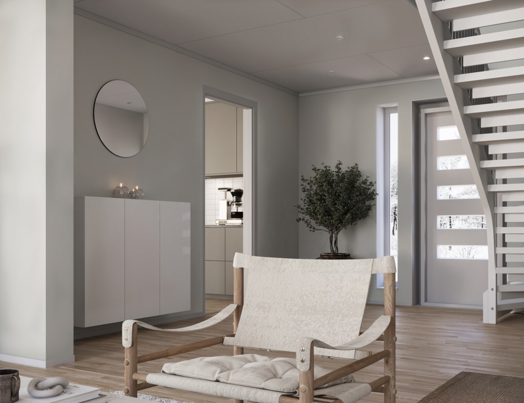 Det planerade huset är ett modernt tvåplanshus på 194 kvm med 6–7 rum, vilket ger generösa ytor och flexibilitet. Huset har fullhöjd på övervåningen och möjlighet till upp till fem sovrum. Skön golvvärme och låg energiförbrukning är standard, och alla fönster i aluminium ger låga framtida kostnader. För barn med leklust ger den öppna planlösningen mellan hall, kök och vardagsrum stora möjligheter att leka och springa runt. Köket har plats för ett stort matbord eller en rejäl köksö, och en altandörr bjuder in till morgonfika i trädgården. Övervåningen har lutande ryggåstak på 2,4–4 meter och flexibla ytor. Uteplats kan skapas på flera av husets sidor. Hallen erbjuder smarta förvaringslösningar, och på entréplanet kan du välja mellan ett eller två sovrum – eller skapa större sällskapsytor. Som köpare kan du påverka både planlösning, material och färgval, vilket gör huset helt anpassningsbart efter din livsstil.