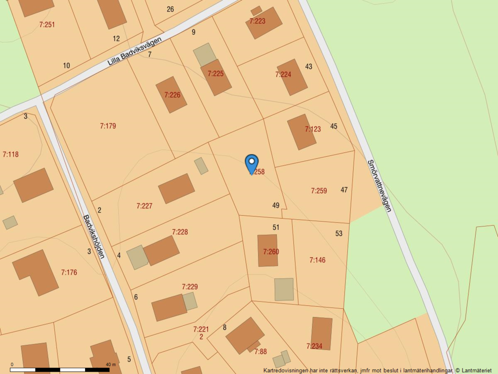 Tomten omfattar 856 m², är plan och lättillgänglig, och ligger i ett lugnt läge vid Smörvattnet. Här får du känslan av lantlig idyll samtidigt som centrala Göteborg nås på cirka 15 minuter med bil.
